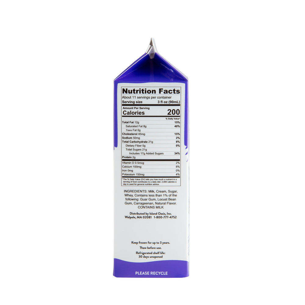 Skip the scoop and add sweet, sippable vanilla ice cream flavor to your beverage creations with this liquid Ice Cream Mix from Island Oasis. Our all-natural drink mix features sweet vanilla, cream and real sugar for authentic soda fountain taste. At Island Oasis, we create convenient, premium products that make delicious drinks easier to enjoy. Keep it sweet and simple with our delicious Ice Cream Mix. Just pour, add ice and blend for a rich, creamy beverage.